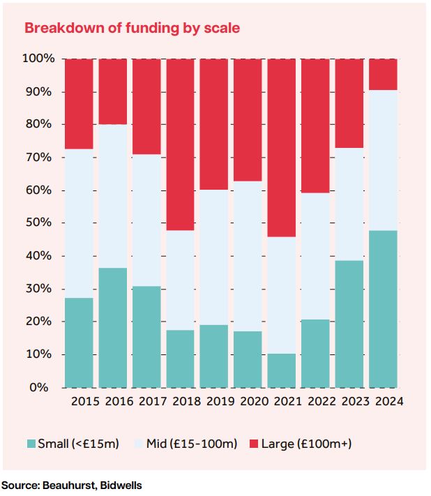 These funding trends inevitably impact the ability of companies to scale. In our survey of SMEs, life science companies report finance to be the greatest barrier to growth, with similar challenges seen in the automotive and tech hardware sectors. In contrast, the energy and environmental sectors are the least concerned about finance, although they are challenged in other ways, particularly access to talent, a point discussed elsewhere in this report.