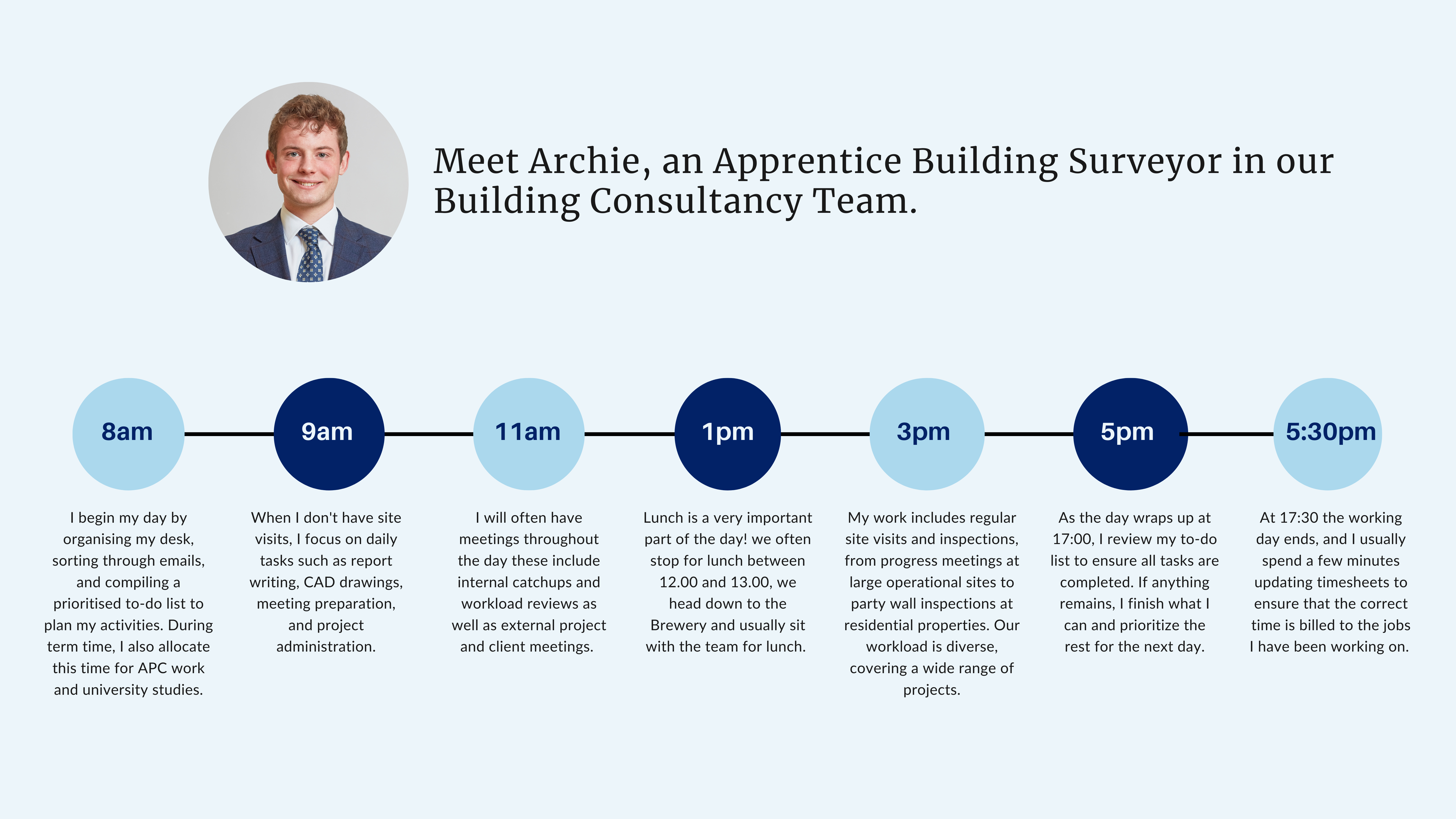 Curious about what it’s like to be an apprentice with us? Step into the shoes of our apprentices and discover the variety that their roles bring. From hands-on site visits to collaborative team projects, no two days are the same. Explore a day in their lives and see how you could kickstart your career with us!